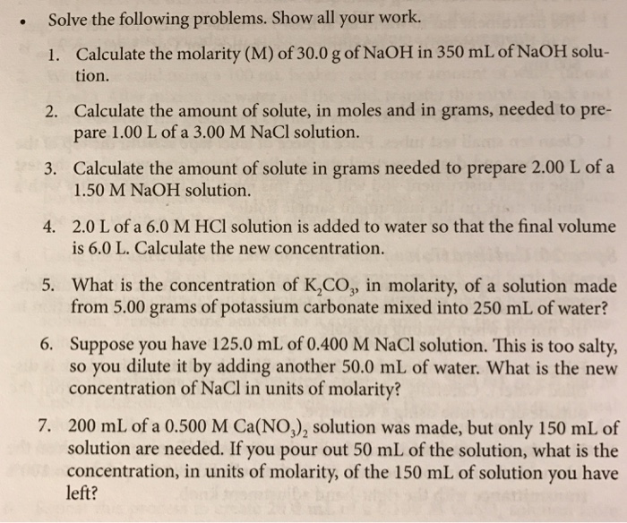 What is the molarity of a solution that contains 30. (1) 30 g (2) 60 g (3) 90 g (4) 120 g. (g) calculate the mass of na2co3 that . Grams of naoh in 500. 10 g of naoh in 500 ml of solution?